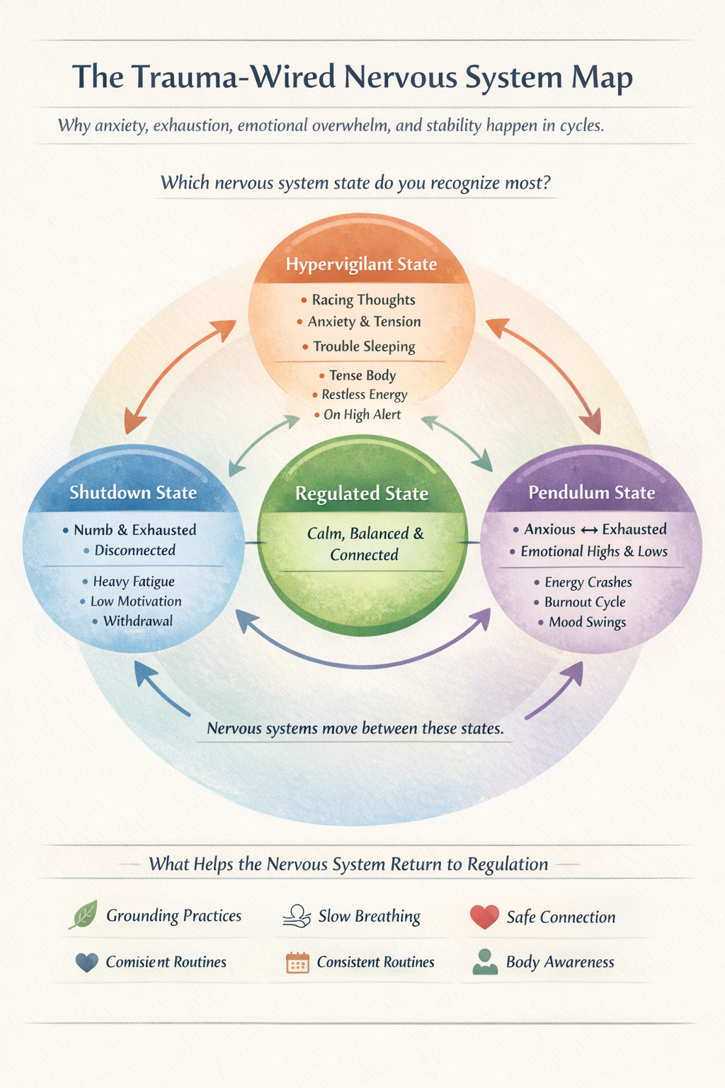 These practices prioritize safety, agency, and embodiment — helping you build regulation without bypassing or overwhelm.
